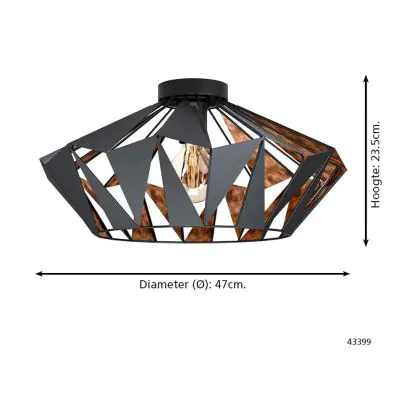 Beschreibung Eglo Deckenleuchte Carlton 6 Stahl Schwarz Bernstein | IP20 - Geeignet für 1x E27