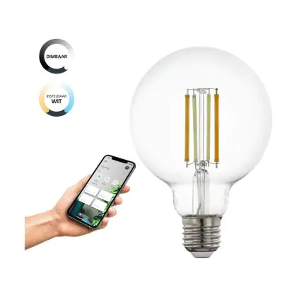 Die Eglo LED E27 Globe Klar Fadenlampe 6W 806lm - 822-865 Abstimmbares Weiß | Zigbee Dimmbar- Ersatz Für 60W ist eine effiziente E27 LED-Lampe mit Retrodesign und der perfekte Ersatz für Ihre konventionellen 60W Lampen mit E27. Zudem strahlt sie Licht in der Farbtemperatur aus und punktet durch eine lange Lebensdauer.