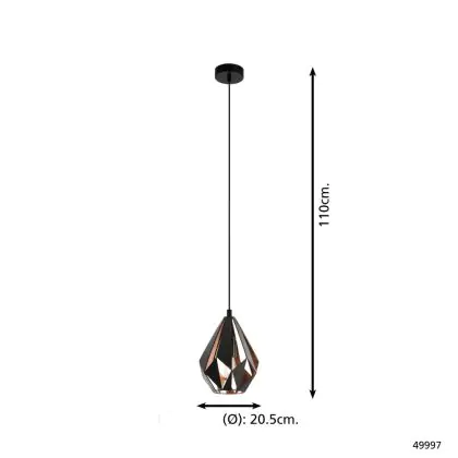 Die Eglo Pendelleuchte Carlton 1 Schwarz, Bernstein | Geeignet für E27 sorgt für eine angenehme Ausleuchtung und punktet durch modernes Design. Diese Leuchte ist speziell zur Montage an der Decke vorgesehen.