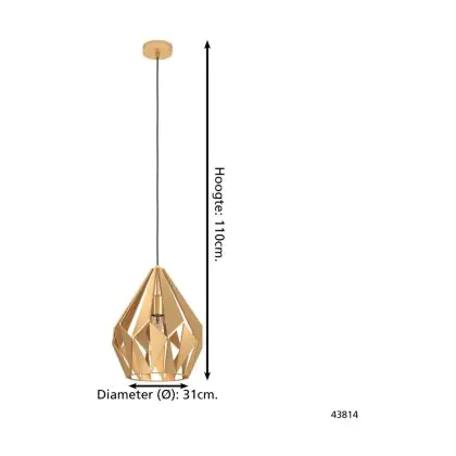 Beschreibung Eglo Pendelleuchte Carlton Stahl Gold | IP20 - Geeignet für 1x E27