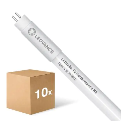 Die Mehrfachpackung 10x Ledvance LED Röhre T5 Performance (Mains AC) High Efficiency 16W 2400lm - 840 Kaltweiß | 115cm - Ersatz Für 35W ist eine effiziente LED-Röhre und der perfekte Ersatz für Ihre konventionelle Leuchtstoffröhre mit 28W und einem G5. Die Röhre hat eine Länge von 1149 mm und einen Durchmesser von 19 mm. Zudem strahlt das Produkt Licht in der Farbtemperatur 4000K - Kaltweiß aus und punktet durch eine lange Lebensdauer.